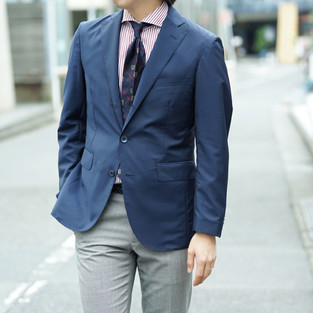 山本の紺色ウール絹混ジャケットに対し、こちらはサマーウール100%のセットアップ